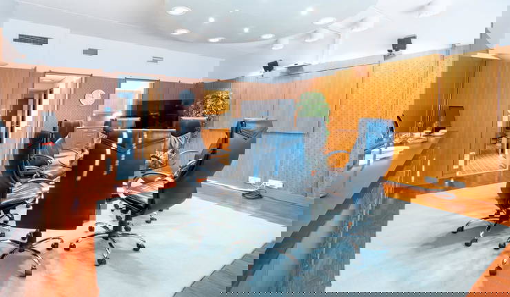 Kabinetin puolella on 8 hengelle pöytäpaikka sekä 2 hengen sohva. Tilava pukuhuone, jossa takka, hiustenkuivain ja pefletit, 3 suihkua sekä pyöreän muotoinen sauna n. 10 hlölle sekä wc-tilat. Keittiössä jääkaappi, astianpesukone, mikro, keittolevyt ja kahvinkeitin sekä perusastiasto. Päiväkäytön tilahinta tuntihinnoittelulla klo 8-16 ja iltakäytön tilahinta 355 €/ilta, johon sisältyy tilan käyttö klo 16-00, vakiosiivous, saunapyyhkeet ja hygieniatarvikkeet. Tilaan on mahdollista tilata laadukkaat tarjoilut kauttamme. Tilaan kulku portaita pitkin, ei hissiä.