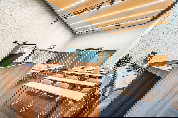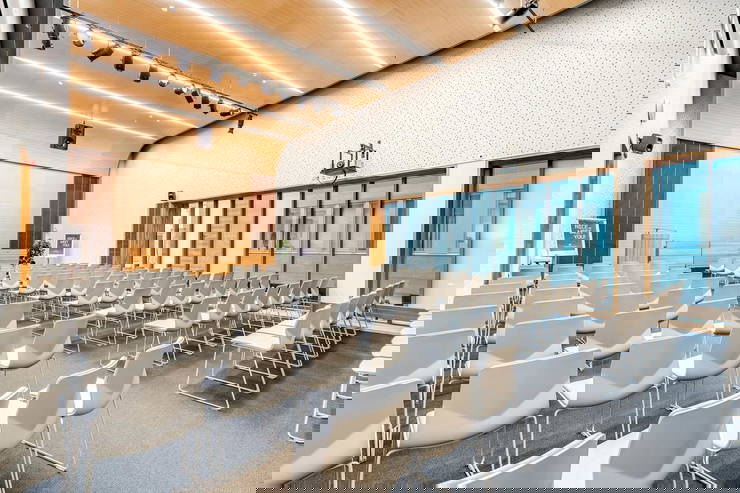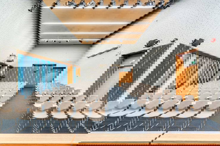 Tasalattiainen auditorio A-talon 2. kerroksessa, joka soveltuu erinomaisesti seminaarien (max 150 hlöä) järjestämiseen. Luokkamuodossa 80 hlöä. Upea, avara tila, jossa isot ikkunat. Salin edessä puhujakoroke. Kiinteitä mikrofoneja 4 kpl, headset ja kapulamikrofoneja 2 kpl sekä kaksi tykkiä, jotka näyttävät eri seinille. Tila on varattavissa yhdestä tunnista koko päiväksi ja sinne on mahdollista tilata laadukkaat kokoustarjoilut.