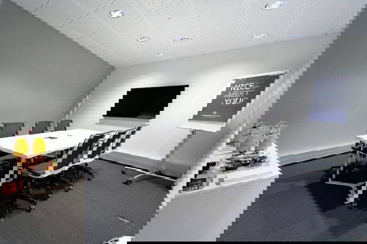 • Turvallinen, äänieristetty ja ikkunaton kokoustila, jossa on kaksoisovet