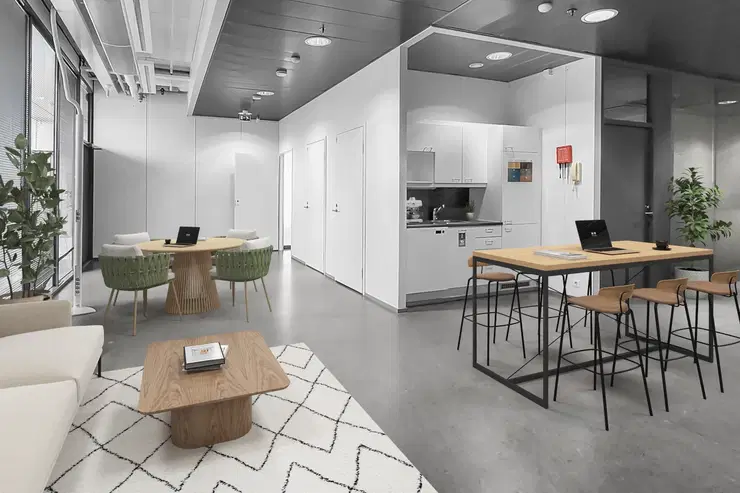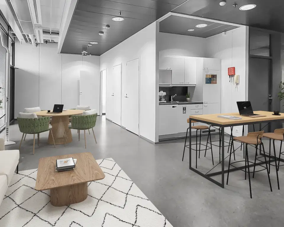 Tila on mahdollista vuokrata myös kalustettuna. Saatavilla ovat lisäksi työtilan suunnittelu- ja muuttopalvelut.