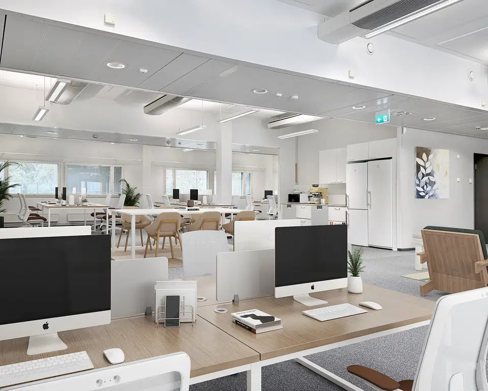 Tilassa on avotyötilaa, työhuoneita sekä kaksi suurta neuvottelutilaa (16 ja 12 henkilölle), jotka mahdollistavat sujuvan tiimi- ja asiakastyöskentelyn. Erityistä viihtyisyyttä tuo hulppea kahvilamainen taukotila, joka toimii sekä rentoutumispaikkana että epämuodollisena kohtaamistilana. Lisäksi käytössä ovat modernit keittiötilat ja wc-tilat.