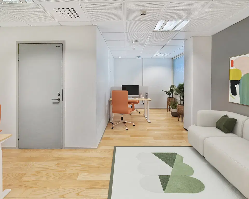 Vapautumassa 4. kerroksen kompakti toimitila. Ilmoitettu neliömäärä sisältää jyvityksen kiinteistön yhteisistä tiloista.