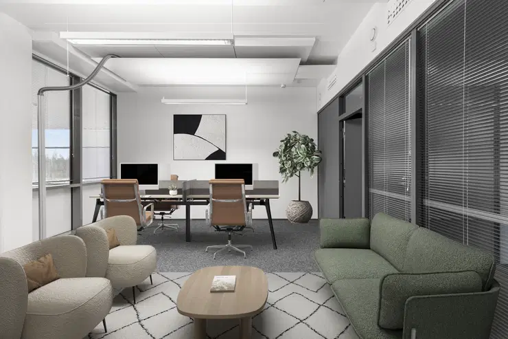 Tila on vuokrattavissa kalustettuna, ja työtilan suunnittelu- sekä muuttopalvelut ovat saatavilla muuton tueksi.