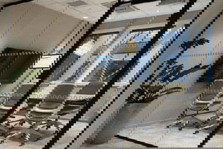 Meeting room for 6 persons with a diplomat table. Widerøe is equipped with Teams video setup. We also provide catering services.