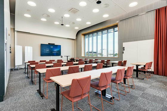 The top-floor bright meeting room for 30 in the heart of Tampere with great traffic connections. Tables are arranged to a classroom mode. The room is finished to high specifications and it includes AV screen, whiteboard, high speed Wi-Fi and office equipment. High-quality catering services are available for additional order. Meeting room is located on the 8th floor and has a big terrace. Separate fees for evening and weekend use, ask for an offer. Furniture arrangements will be invoiced separately. You will find a webcamera in this meeting room for hybrid conferences. Please notice we rent our meeting rooms only for companies.