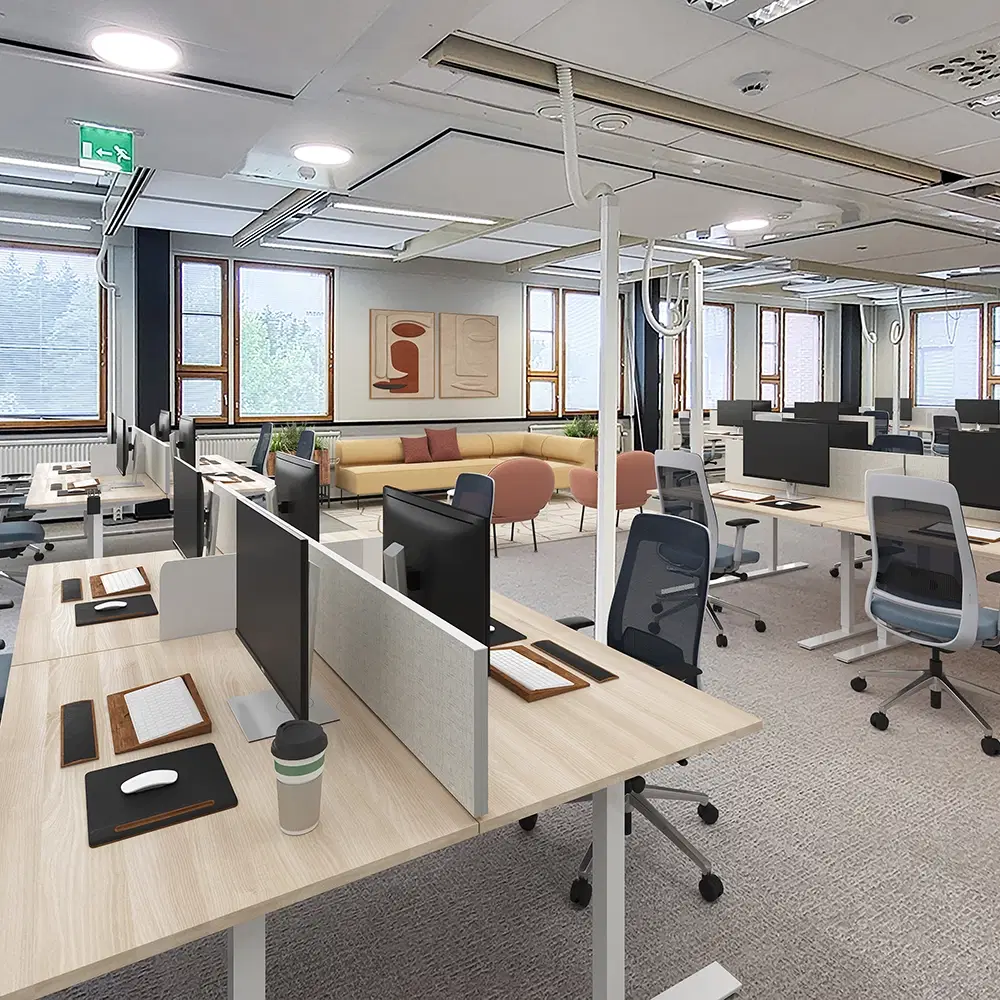 Ready-to-move-in open-plan office on the third floor available for lease. The office is well soundproofed. Shared kitchen and toilet facilities can be found near the premises. Technopolis offers its tenants a comprehensive set of services and the campus has, among other things, three gyms and five conference rooms with saunas. The campus is located within easy reach of the metro, Light Rail Line and Ring Road I.