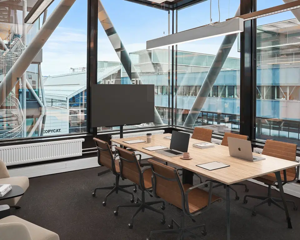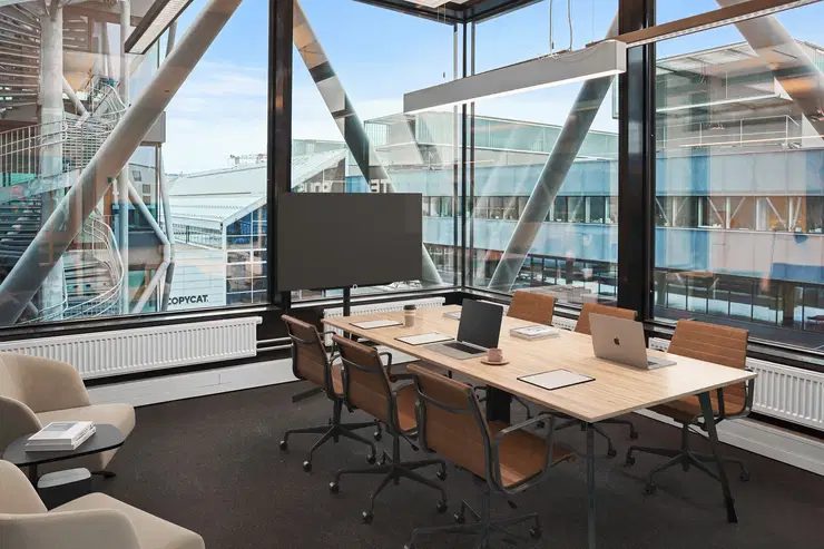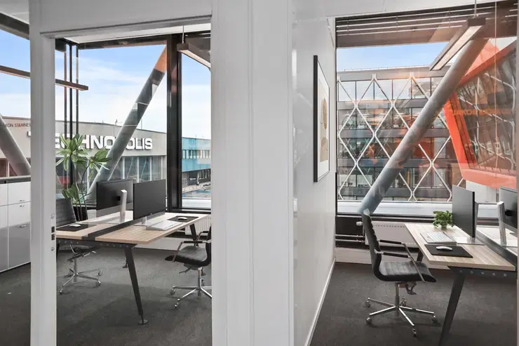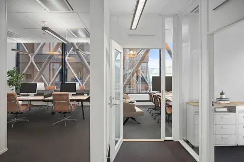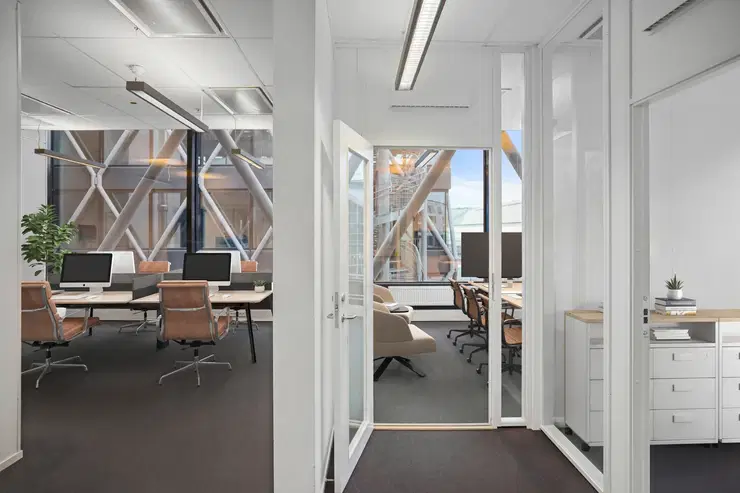 Bright and space-efficient office premises currently consisting of private offices, meeting rooms, and an open-plan area. The premises are located on the 4th floor of the Portal building, featuring large windows and plenty of natural light.