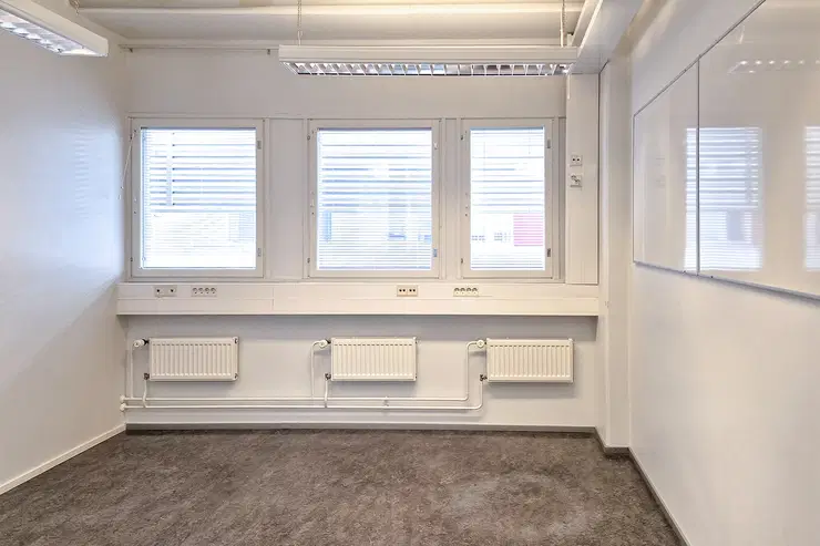 A compact third-floor office available for lease at the Technopolis Linnanmaa campus. The space is located near the shared kitchen and the elevator. The space has a room-specific cooling, which ensures a pleasant working environment all year round. The stated square footage contains a share of the common areas.