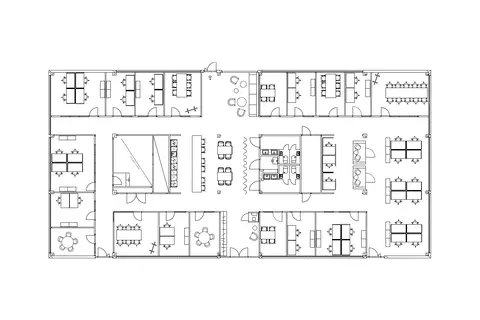 The office has an open-plan space that can be easily adapted to your needs. You can open the space into a larger open space or divide it into smaller units. In addition, the space has work and meeting rooms of various sizes that offer privacy and also adapt well to team workspaces.