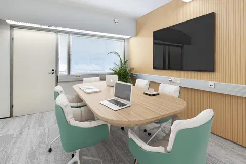 A second-floor office room available for lease in Technopolis Linnanmaa campus. This space consists of four office rooms, a kitchen and a toilet. The space has efficient room-specific cooling. The stated square footage contains a share of the common areas.