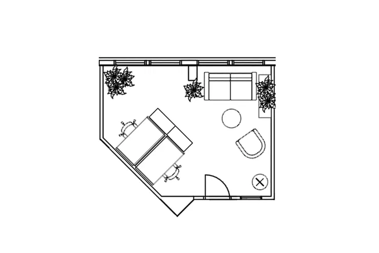 A practical office space available on the fourth floor. The space is suitable for 2-4 people. Its location at the end of the corridor ensures privacy, and the space is complemented by a range of services to ensure a smooth daily routine. There is access to a shared kitchen and break room, where you can enjoy a coffee break or lunch. For private calls and remote meetings, a shared phone booth is available. The stated square footage contains a share of the common areas.