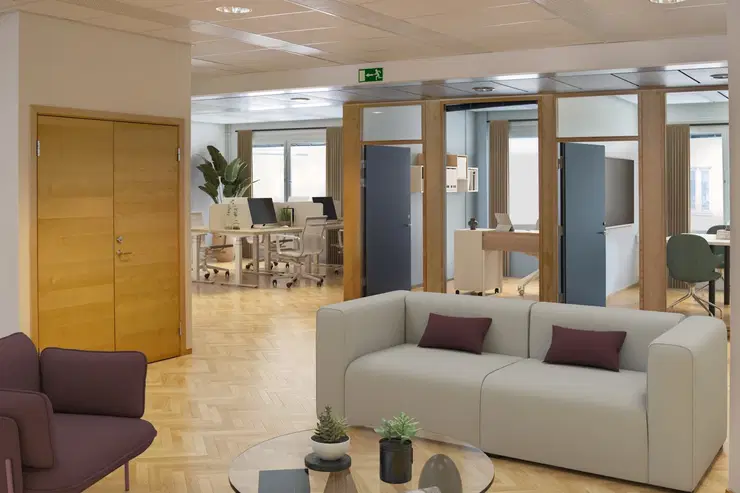 This office space is located in Technopolis HUB small office area with the possibility of small private offices. The office is located on the first floor close to the new reception. In Technopolis HUB you have access to modern meeting rooms, phone booths, kitchens and lounge areas. Through an office in Technopolis HUB, full-service concept is included.