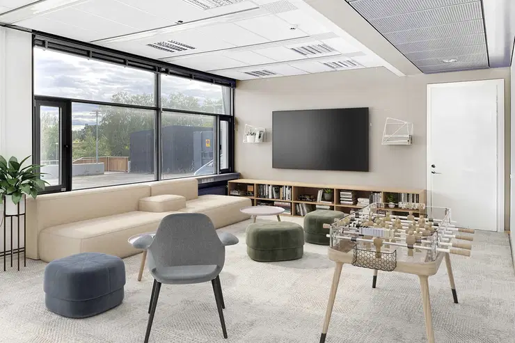 A first floor office space with its own entrance now available for rent.This space consists of open space and office rooms of different sizes. The campus is in a great location, close to good public transportation connections and right next to both E4 and E18. Contact us today and find out more!