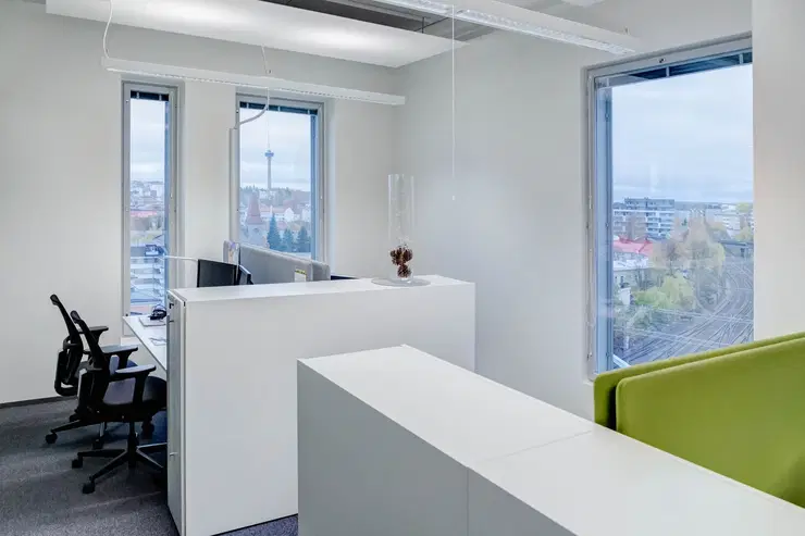 Bright 8th-floor office space with city views available for rent at Technopolis Asemakeskus. The space is well-suited for 10–15 workstations. The space can be customized to meet the clients’s needs. The campus offers amenities such as a lobby, meeting rooms, a restaurant, VIP facilities, and saunas. The location is central, right near Tampere train station.