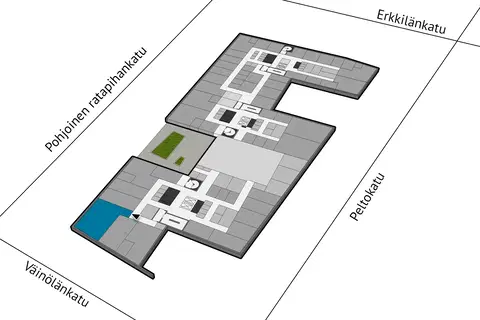 Office space available for rent in Technopolis Asemakeskus HUB small office area. There is a break room and summer terrace on the same floor. The space has two separate rooms and it is suitable for 8-10 workstations. The campus offers amenities such as a lobby, meeting rooms, a restaurant, VIP facilities, and saunas. The location is central, right near Tampere train station.