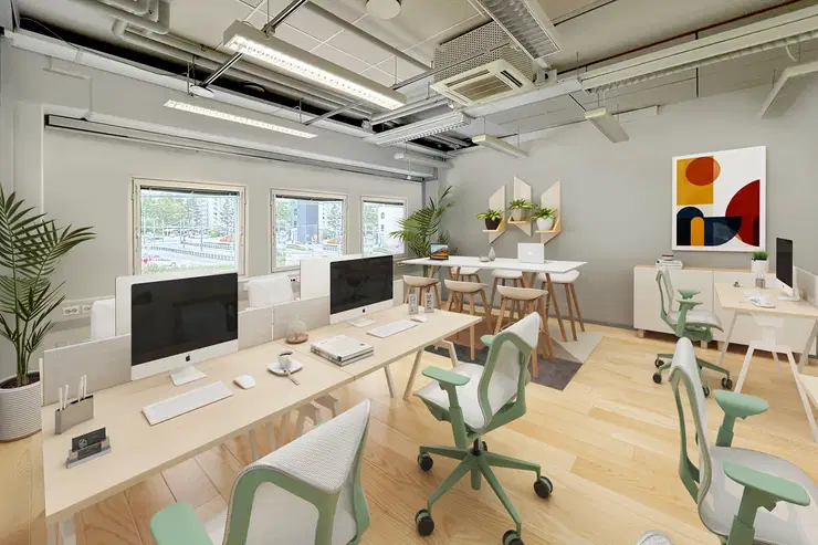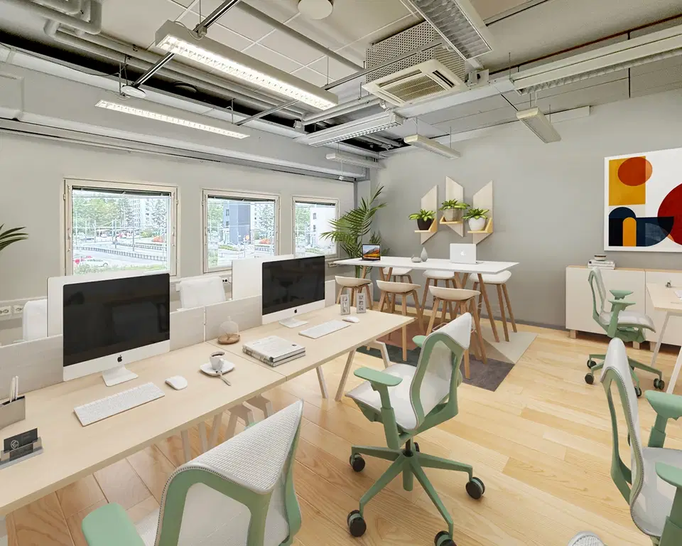 Easily accessible street-level office space for rent in the Hermia 1 service tower. The space is located in the immediate vicinity of the entrance and parking spaces. The space has its own kitchen and toilet facilities and is well suited for 10-15 workstations. The space can be modified to suit the tenant's needs if necessary. A comprehensive range of services is available: lobby, meeting rooms, restaurants, and a gym. The property is located in Hervanta, Tampere, with excellent transport connections. The Hermia campus also has a grocery store and a sports center.