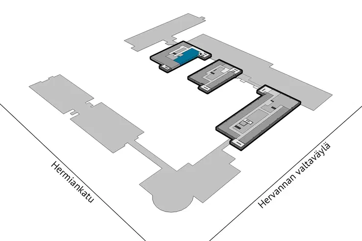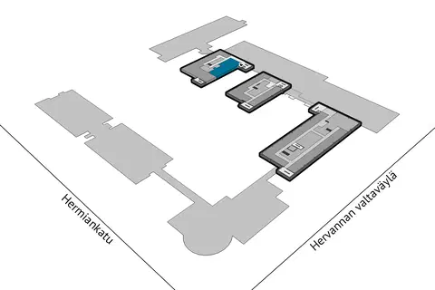 Third floor office for rent. This office space is suitable for 10-14 people. The space has two office rooms, a private meeting room, kitchen and toilets. Located along excellent transport connections, Hermia offers comprehensive services, such as meeting rooms, restaurants, a grocery store and a sports center.