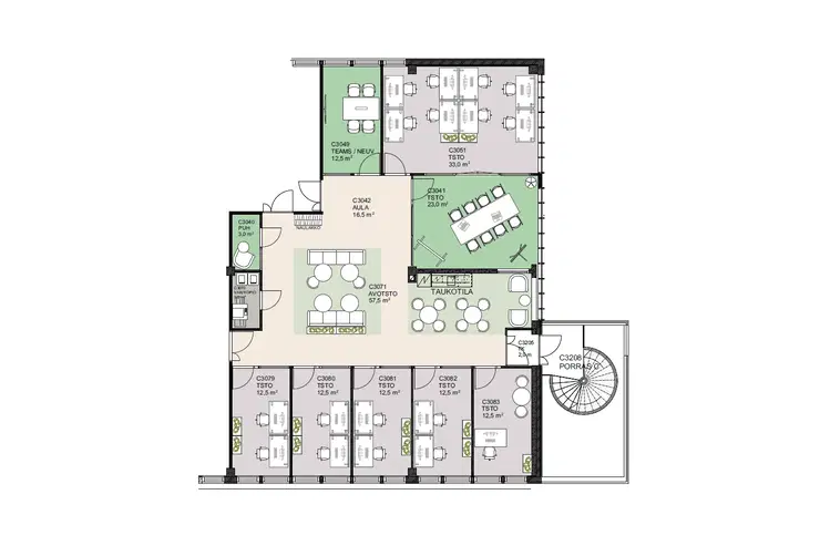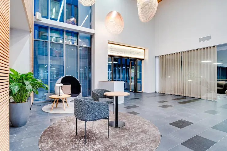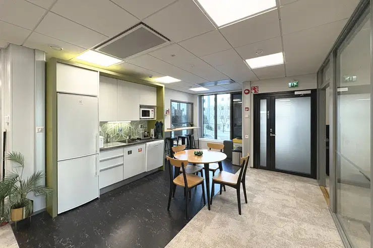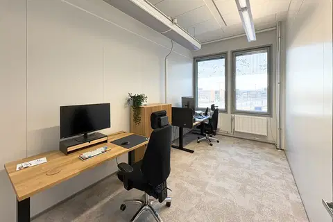 For rent, high-quality and bright office space for a team of 16-20 people at Technopolis Yliopistonrinne, in the center of Tampere. This modern office has its own kitchen, office rooms for quiet working, a meeting room and a phone room. The space can be adapted to the needs of the tenant if required. Yliopistonrinne offers high-quality services such as a gym, restaurant, a versatile conference center, as well as exquisite sauna and VIP facilities.