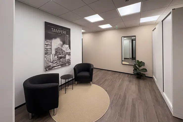A modern office space on the 6th floor in the centre of Tampere is soon available for rent. The colour scheme of the space is clear and serene. The space has 8 office rooms with excellent soundproofing. The space can be adapted to the needs of the tenant. Technopolis Yliopistonrinne offers high quality services such as a versatile conference centre, gym, restaurant, as well as great sauna and VIP facilities. Welcome to have a visit!