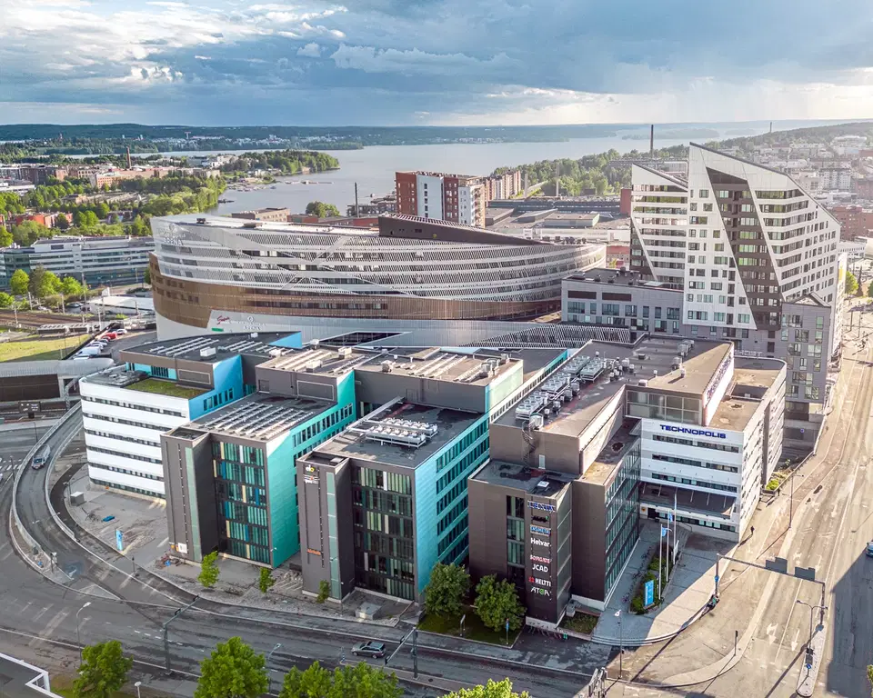 Modern and bright office space for rent on the 7th floor in the centre of Tampere. The space is ideal for 30-50 people. The office has a spacious kitchen/breakroom, team rooms, own meeting rooms and smaller rooms for quiet working. The space can be adapted to the needs of the tenant if required. Yliopistonrinne offers high-quality services such as a gym, restaurant, versatile conference center, and excellent sauna and VIP facilities.