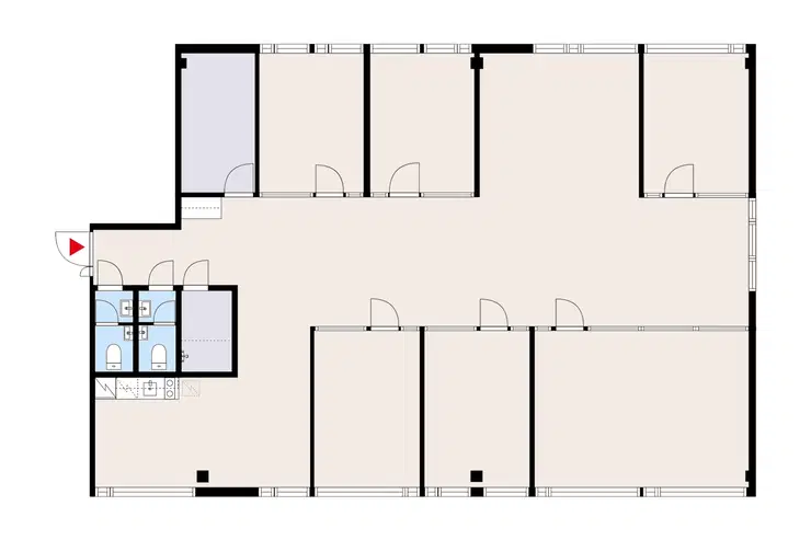 For rent a functional and ready-to-move-in office on the 5th floor. The space cosists of open space, several rooms of different sizes, a kitchen and toilets. Convenient access to the reception and restaurant.