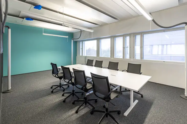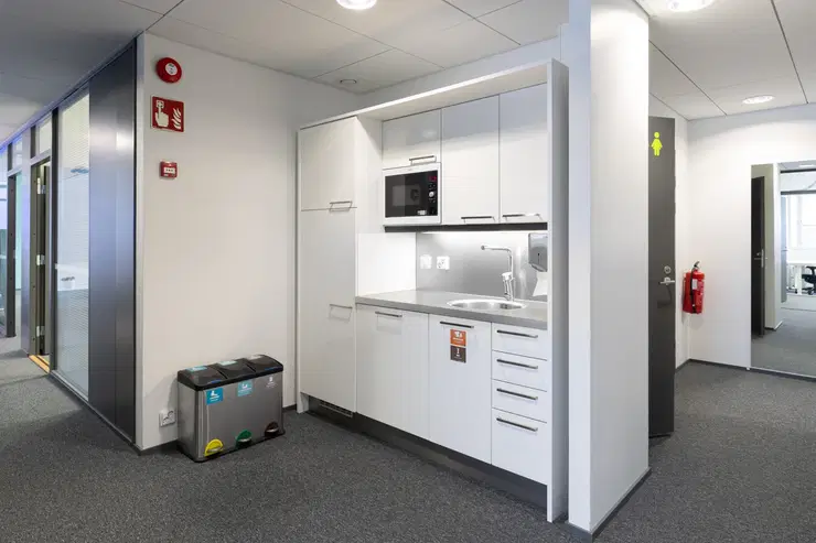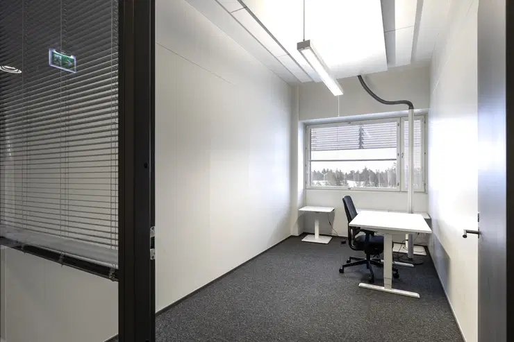 For lease at Technopolis Aviapolis in Vantaa: a move-in-ready 224 m² office space on the fifth floor of Building G. This comfortable space has a functional layout, including open-plan areas, rooms of various sizes, as well as its own kitchen and restroom facilities. The office is equipped with air conditioning to ensure a comfortable temperature year-round.